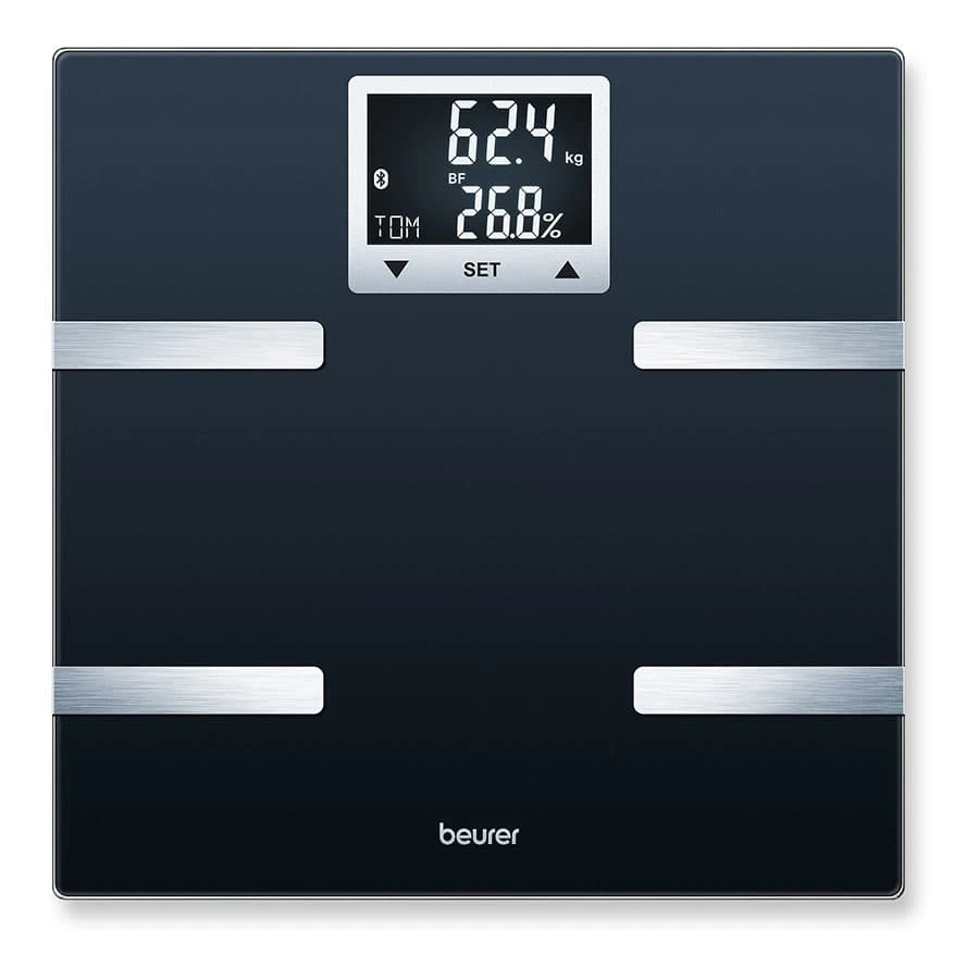 Die Beurer BF 720 Diagnosewaage verfügt über ein XL-LCD-Display im modernen Look mit weißer Beleuchtung, damit Sie die Messwerte immer im Überblick behalten. Dank der Health Manager App und der Body Shape App können Sie Daten automatisch über Bluetooth auf Ihr mobiles Gerät übertragen. Sie können Ihr Gewicht, Körperfett, Körperwasser, Ihre Muskelmasse, Knochenmasse, Kalorieninformation und Ihren BMI überwachen und die Entwicklung einfach auf Ihrem Smartphone verfolgen. Die Waage schaltet sich automatisch ein und beginnt zu messen, wenn der Benutzer hinauf steigt.