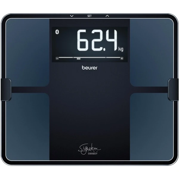 Mit der Beurer Diagnosewaage BF 915 werden neben dem Körpergewicht auch gleich noch weitere Körperwerte präzise geliefert. Darunter Werte, die für Fitness oder Gesundheit relevant sind. Darunter sind Körperfett- und Wasseranteil, Knochenmasse, Muskelanteil sowie AMR/BMR und BMI. Die Diagnosewaage bietet 8 Benutzerspeicher mit automatischer Benutzererkennung sowie 5 Akitvitätsgrade zur Ermittlung des täglichen Aktivitätsumsatzes in kcal. Bei Bedarf kann auf der Rückseite der Waage die Maßeinheit von Kilogramm auf Pfund oder Stone umgestellt werden. Mit der kostenlosen „beurer HealthManager Pro“ App lassen sich die Körperdaten und Messwerte langfristig beobachten. Die Datenübermittlung erfolgt automatische innerhalb der Bluetooth®-Reichweite nach Öffnen der App. Die Waage ist allerdings auch ohne App nutzbar und kann einfach über Tasten bedient werden.