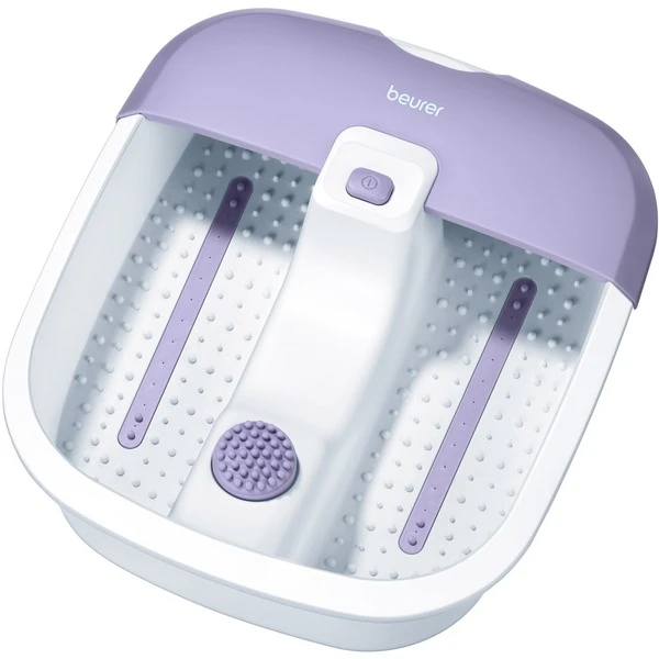 Die Füße spielen in unserem Leben eine „tragende“ Rolle – unser gesamtes Körpergewicht lastet auf ihnen. Je 26 Knochen, 22 Gelenke und 107 Bänder machen die stabile Konstruktion von Füßen aus. Dieses anatomische Meisterwerk will gepflegt sein. Mit dem Fußsprudelbad FB 12 von Beurer läßt sich durch die weichen Schwingungen der Vibrationsmassage die verspannte Muskultur lockern. Schon nach wenigen Minuten fühlt man sich entspannter, zufrieden und gesund. Dieser Effekt wird zusätzlich durch die Sprudelmassage verstärkt. Unter der Fußauflage ist eine Heizung eingebaut. Warmes Wasser kann durch die zugeschaltene Heizung einige Zeit warm gehalten werden. Zum Aufheizen von kaltem Wasser ist die Heizung nicht geeignet. Um eine optimale Wirkung zu erzielen, wird eine Massagedauer von max. 40 Minuten empfohlen.