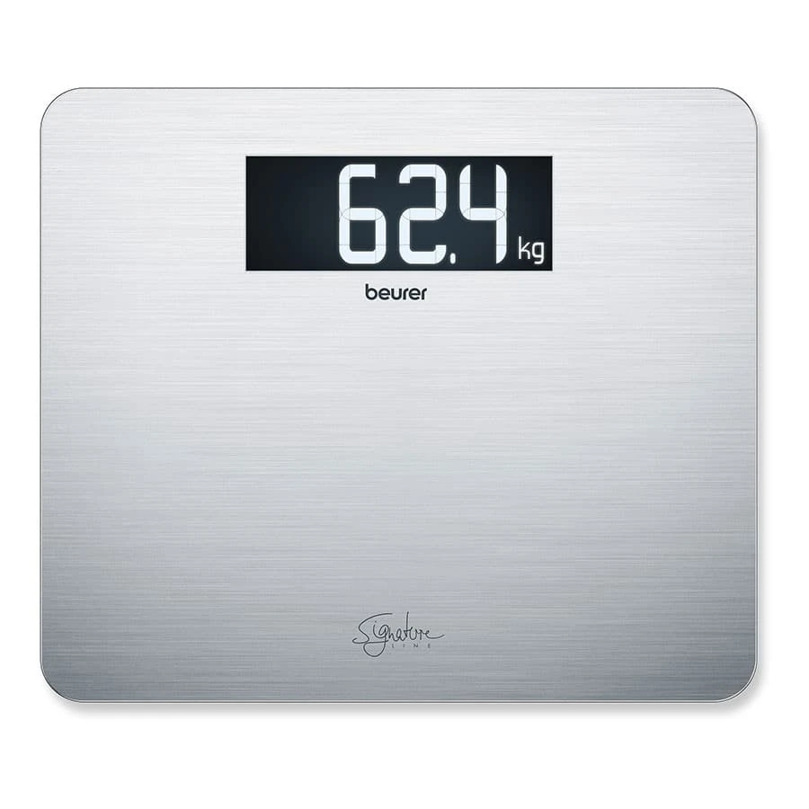 Die Beurer GS 405 digitale Personenwaage hat eine Oberfläche aus hochwertigem Anti-Fingerprint Edelstahl, die leicht zu reinigen ist. Mit großem LCD-Display mit extra starken 8-mm-Sicherheitsglas. Dank der extra großen Trittfläche ist sie ideal für die ganze Familie und eignet sich für Personen mit einem hohen Gewicht, sie hat eine Tragkraft von 200 kg. Die Waage schaltet sich automatisch ein und beginnt zu messen, wenn der Benutzer hinauf steigt.