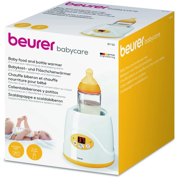 Der digitale Babykostwärmer BY 52 von Beurer ermöglicht eine schonende und gleichmäßige Erwärmung von Babynahrung. Ein LED-Display zeigt die Temperatur an mit der die Nahrung erwärmt wird. Der digitale Babykostwärmer BY 52 ist geeignet für alle handelsüblichen Fläschchen und Gläschen. Das Zubehör ist spülmaschinengeeignet.