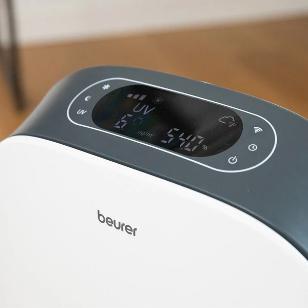 Tief durchatmen, bitte! Mit dem App-gesteuerten LR 500 werden allgegenwärtige Luftschadstoffe aus Räumen verbannt. Mit einer Filterleistung von bis zu 99,95 % in Räumen bis zu 100 m² sorgt der Luftreiniger von Beurer für saubere Atemluft Zuhause. Um dies zu erreichen verfügt der LR 500 über einen PM 2.5 Sensor, der Feinstaub bis zu 2,5 μm erkennt und ein dreistufiges Filtersystem. Das Filtersystem entfernt Hausstaub, Tierhaare, Gerüche, Pollen, diverse Bakterien und Viren sowie schädliche Gase aus der Luft. Zur zusätzlichen Luftreinigung kann noch ultraviolettes Licht dazu geschaltet werden. Das Gerät verfügt über ein benutzerfeundliches Display auf dem die aktuelle Uhrzeit, Temperatur, relativen Luftfeuchtigkeit und Raumtemperatur angezeigt wird. Dazu lässt sich der LR 500 leicht den individuellen Bedürfnissen anpassen. Dazu steht die App „beurer FreshHome“, vier Leistungsstufen sowie ein Turbomodus und eine Timerfunktion (1 – 24 h) zur Verfügung. Im Nachtmodus arbeitet das Gerät leise und mit gedimmter Beleuchtung.