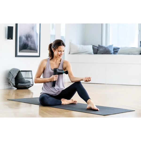 Die MassageGun MG 185 von Beurer dient der Lockerung von Verspannungen mit einer kraftvollen und wohltuenden Triggerpunktmassage. Mit den fünf unterschiedlichen Massageaufsätzen ist die stylische Massagepistole am ganzen Körper anwendbar. Dazu bietet die MG 185 neun Intensitätsstufen und drei Massageprogramme mit bis zu 3.000 Impulsen pro Minute. Dank dem leistungsstarken Lithium-Ionen-Akku hat die MassageGun eine Akkulaufzeit von bis zu 5,5 Stunden, dazu ist sie besonders ergonomisch mit rutschfestem Griff.