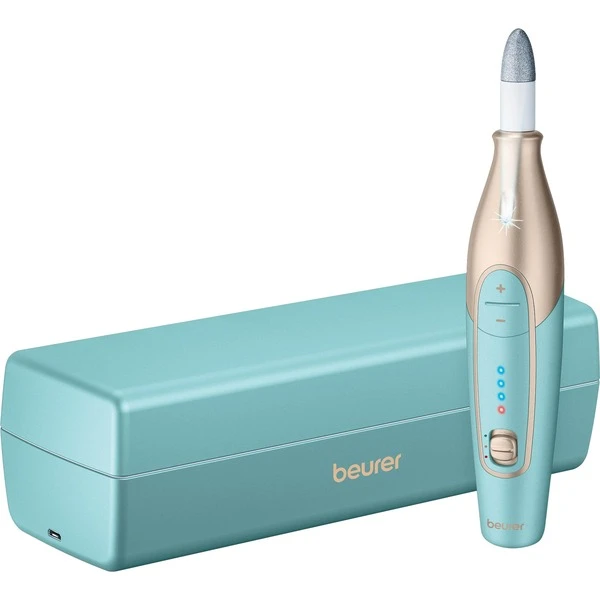 Mit dem MP 84 Maniküre- und Pediküregerät können Nägel durch den eingebauten Akku ganz ohne störendes Kabel gepflegt werden. Es sind 10 Aufsätze aus langlebiger Saphirbeschichtung, beziehungsweise aus Polierfilz beigefügt. Zusammen mit der dreistufigen Geschwindigkeitsregelung und dem Rechts-/Linkslauf wird eine professionelle Fuß- und Nagelpflege möglich, wie es sonst nur beim Fußpfleger denkbar ist. Zusätzlich sorgt das integrierte LED-Licht für optimale Lichtverhältnisse während der Anwendung. Alle Aufsätze lassen sich problemlos in das praktische Lade- und Aufbewahrungs-Etui des MP 84 integrieren.