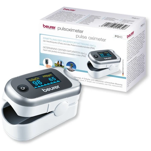 Das Pulsoximeter PO 40 von Beurer dient der einfachen und schnellen Bestimmung der artieriellen Sauerstoffsättigung, der Herzfrequenz oder dem Pulsmodulationsindex. Durch die geringe Größe und das Gewicht lässt sich der PO 40 überall mithin nehmen und nutzen – sowohl zu Hause als auch unterwegs. Der gemessene Wert lässt sich über das gut beleuchtete Display ablesen und zeigt die wichtigen Informationen sehr schnell an. Durch die Verwendung von Batterien lässt sich das PO 40 schnell in Betrieb nehmen, auch wenn diese mal leer sein sollten.
